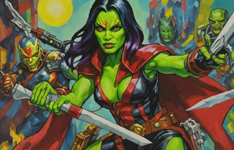 In the cosmic reaches of the Marvel Universe, one character stands out as the epitome of lethal prowess and complex history—the green-skinned assassin known as Gamora.
